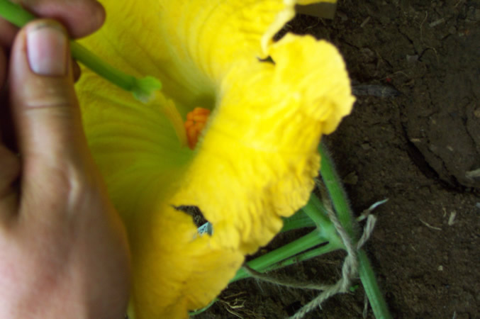 The female flower pops open. Be prepared to close the top of the flower with cupped hand to block access by